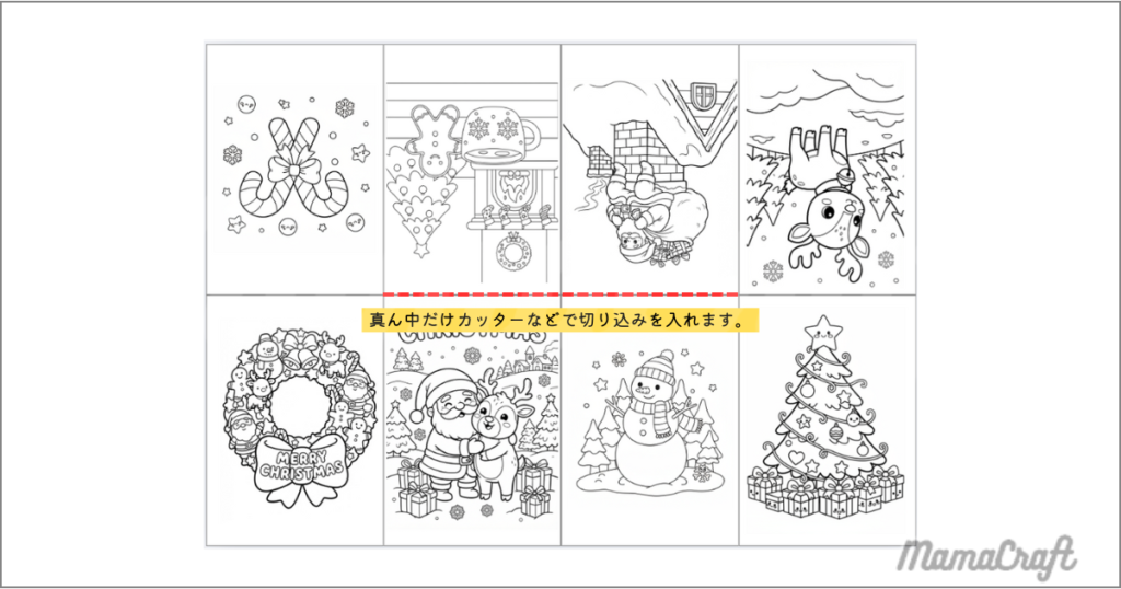 色を塗りながら「サンタさん、何色の服がいいかな?」「雪は何色で塗る?」なんて会話が生まれたら素敵ですよね✨