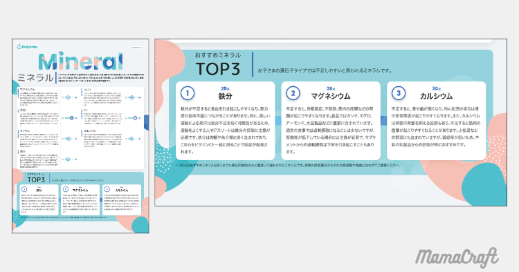 78ページにも及ぶレポートは情報量が多く、そのままでは「どう活かせばいいの?」と迷ってしまう部分はありました。 例えば、うちの子が不足しやすいミネラルは「鉄分」と出ましたが、それをどのように日常に取り入れるかは親の判断に委ねられます。